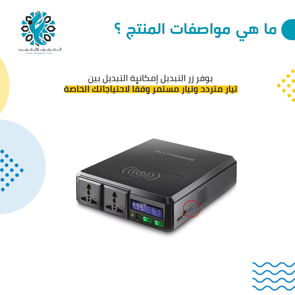 - يوفر زر التبديل إمكانية التبديل بين تيار متردد وتيار مستمر وفقًا لاحتياجاتك الخاصة.