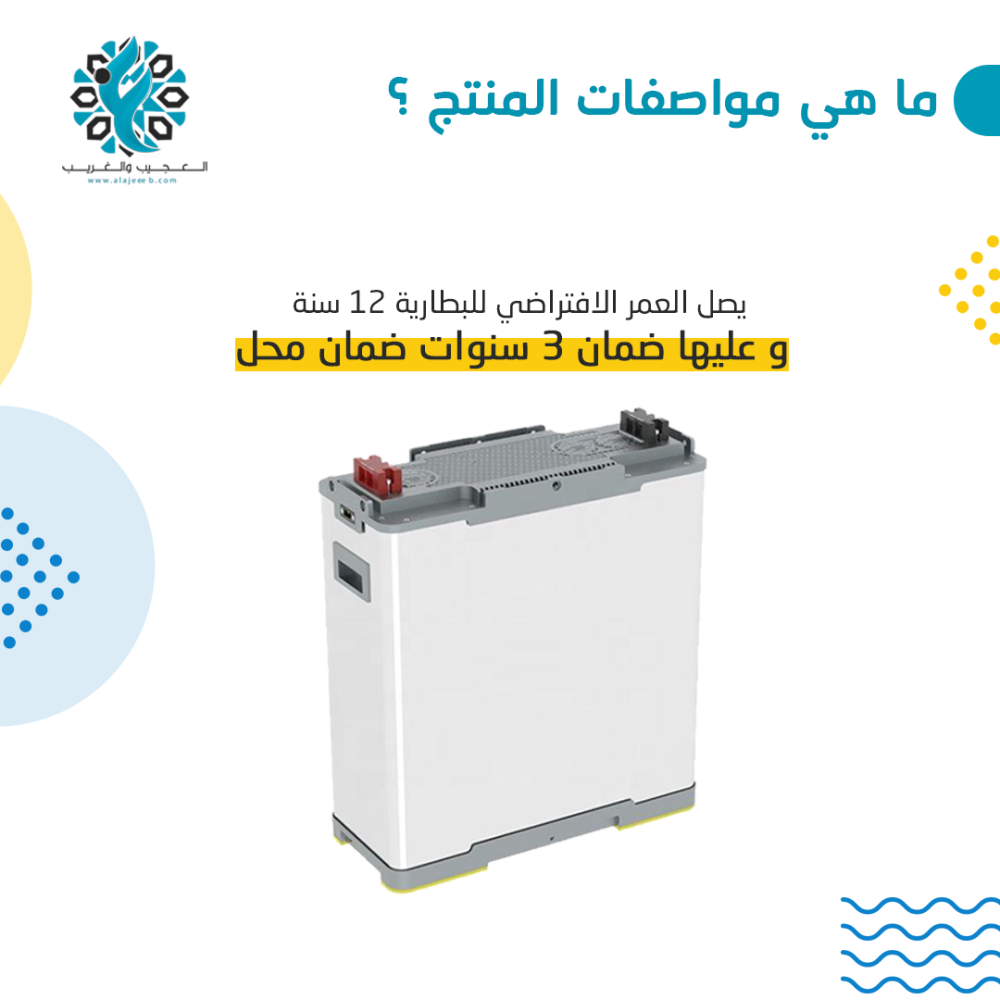 تتحمل الى 6000 مرة اعادة شحن و متوسط عمر 12 سنة و عليها ضمان 2 سنوات