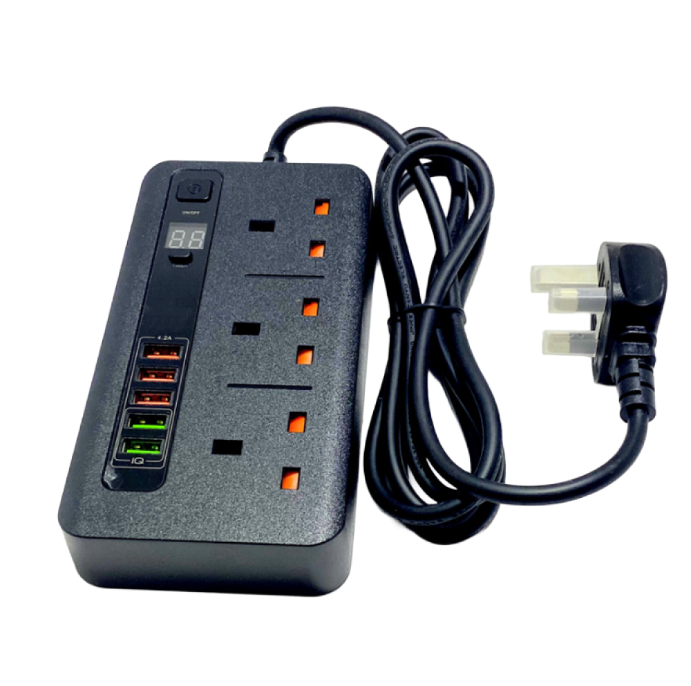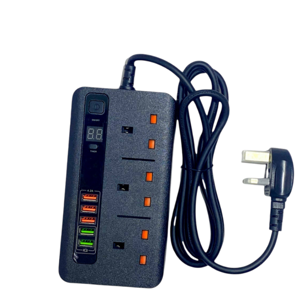 - تحتوي التوصيلة على 3 مداخل كهرباء مع 3 منافذ USB ومنفذين type-c ، تتيح للمستخدم توصيل عدة أجهزة بكفاءة وسهولة.