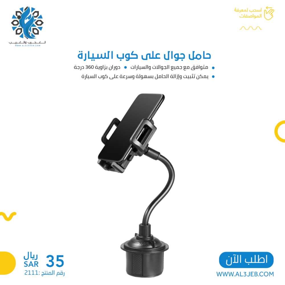 - يمكنك الحصول على "حامل جوال على كوب السيارة" الآن من متجر العجيب والغريب بالإضافة إلى الكثير من المنتجات الأخرى إذا قمت بزيارة موقعنا، قم بالطلب الآن نصلك بأقصى سرعة.