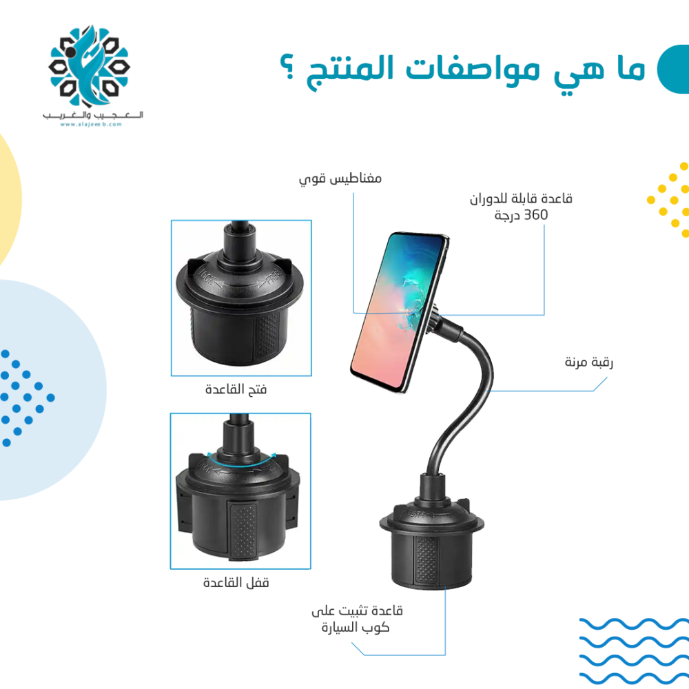 مواصفات حامل جوال مغناطيسي على كوب السيارة:
