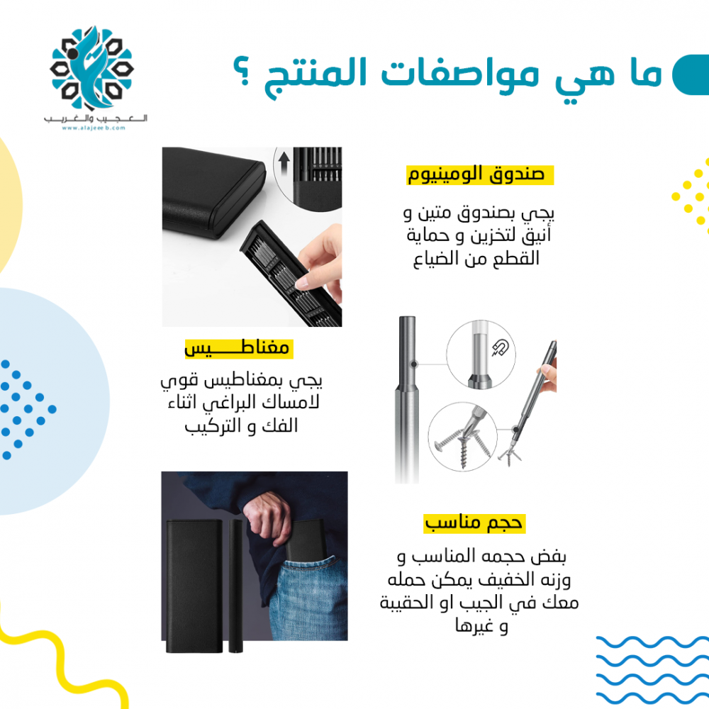 - يمكنك الحصول على "طقم مفكات الكترونيات متعدد صغير برأس مغناطيسي" الآن من متجر العجيب والغريب بالإضافة إلى الكثير من المنتجات الأخرى إذا قمت بزيارة موقعنا، قم بالطلب الآن عبر طرق الاتصال المتعددة المتواجدة في أسفل الصفحة نصلك بأقصى سرعة.