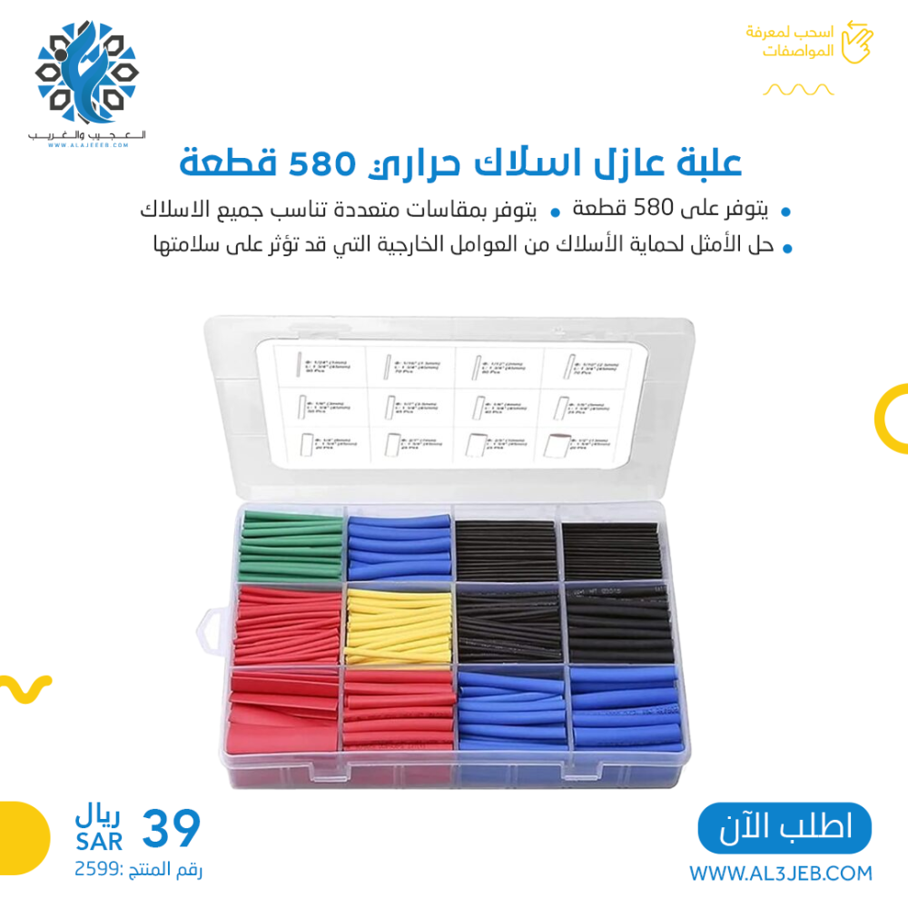 - يمكنك الحصول على "علبة عازل اسلاك حراري 580 قطعة" الآن من متجر العجيب والغريب بالإضافة إلى الكثير من المنتجات الأخرى إذا قمت بزيارة موقعنا، قم بالطلب الآن نصلك بأقصى سرعة.