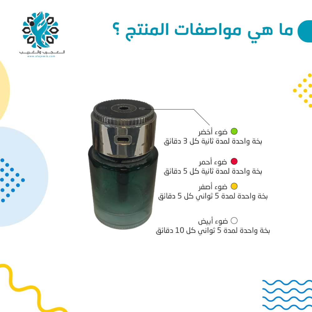 - يمكنك الحصول على "فواحة عطر سائل" الآن من متجر العجيب والغريب بالإضافة إلى الكثير من المنتجات الأخرى إذا قمت بزيارة موقعنا، قم بالطلب الآن نصلك بأقصى سرعة.