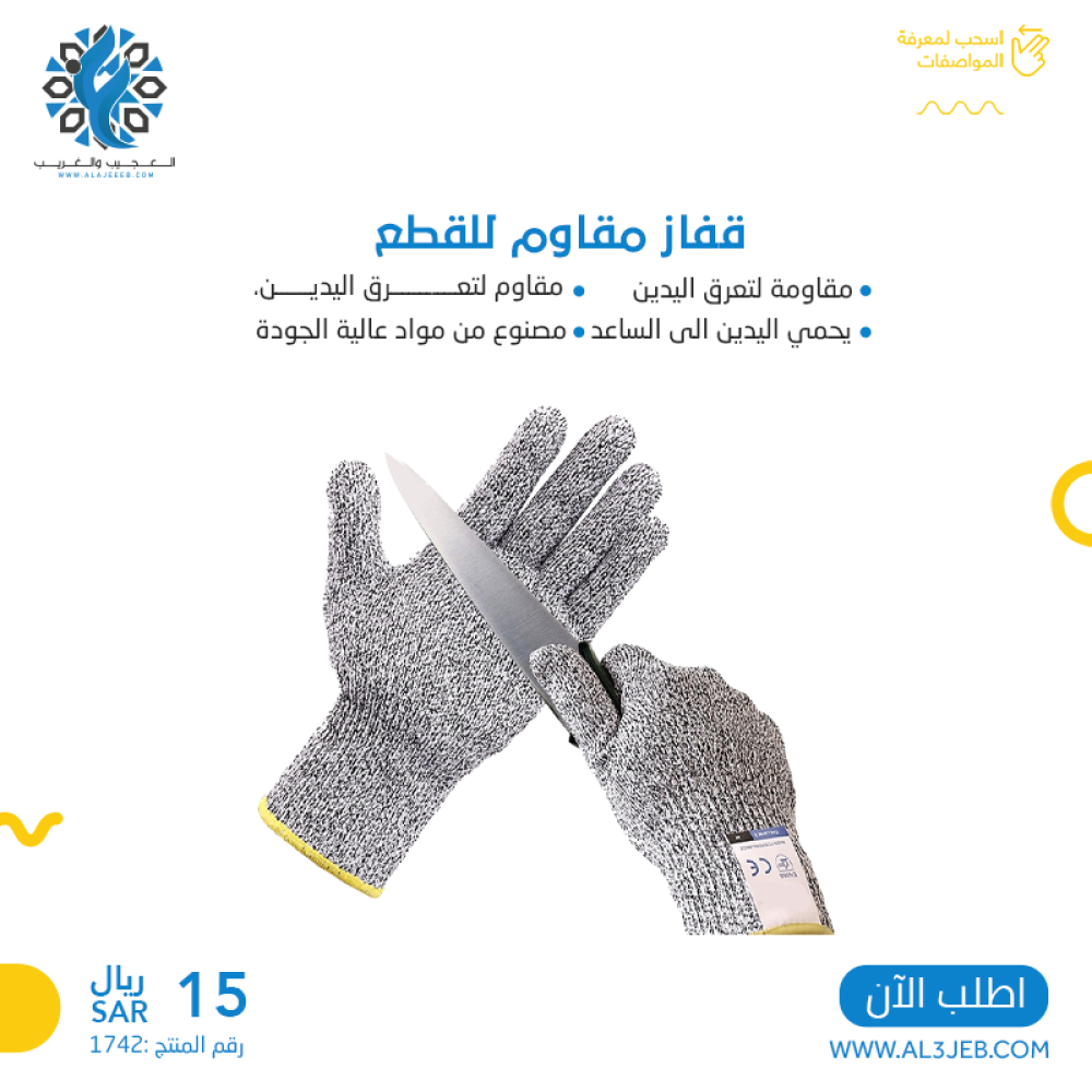- يمكنك الحصول على "قفاز مقاوم للقطع" الآن من متجر العجيب والغريب بالإضافة إلى الكثير من المنتجات الأخرى إذا قمت بزيارة موقعنا، قم بالطلب الآن نصلك بأقصى سرعة.