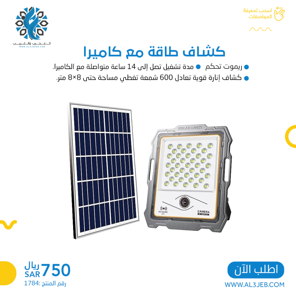 مواصفات كشاف الطاقة الشمسية مع كاميرا :