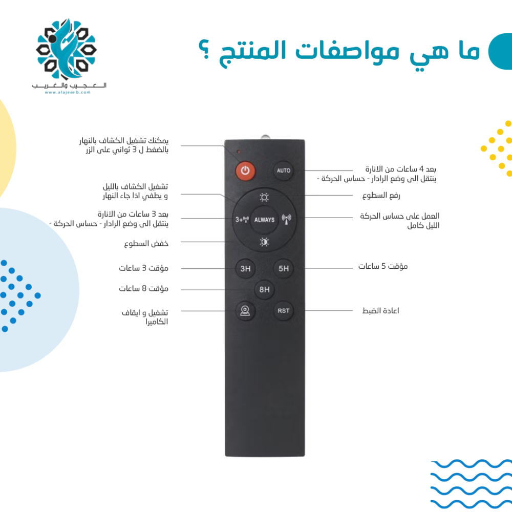 اطلبه الآن من متجر العجيب والغريب واستمتع بإنارة آمنة ومراقبة متواصلة دون انقطاع أو تكلفة كهرباء إضافية.