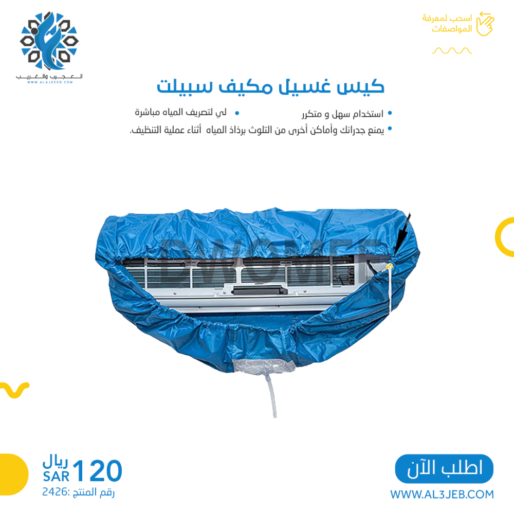 - مع كيس غسيل مكيف سبيلت، ستجد الحل الأمثل للحفاظ على نظافة مكيف الهواء، بفضل تصميمه العملي والمتين، وأداءه المميز.