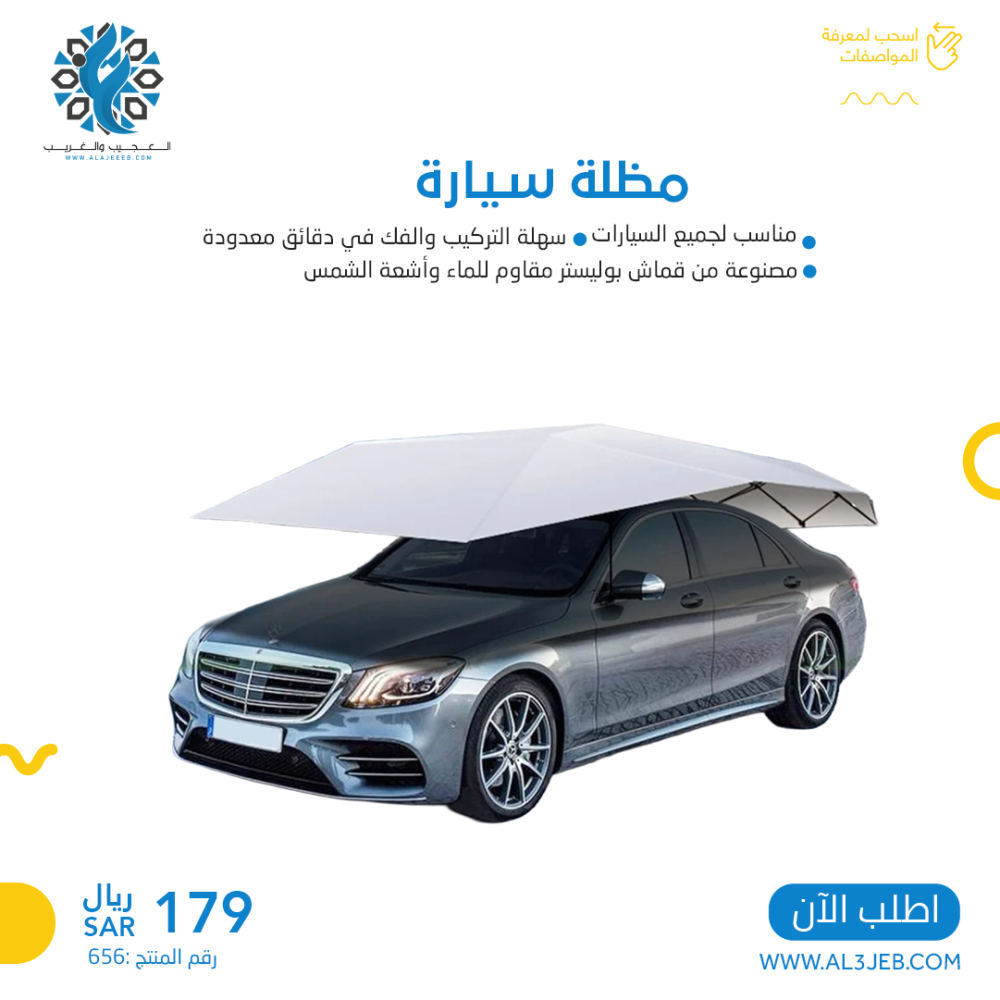- اجعل سيارتك تتمتع بالحماية الكاملة في أي وقت وفي أي مكان، مع مظلة السيارة القابلة للطي والتي تجمع بين الأناقة والوظائف العملية.