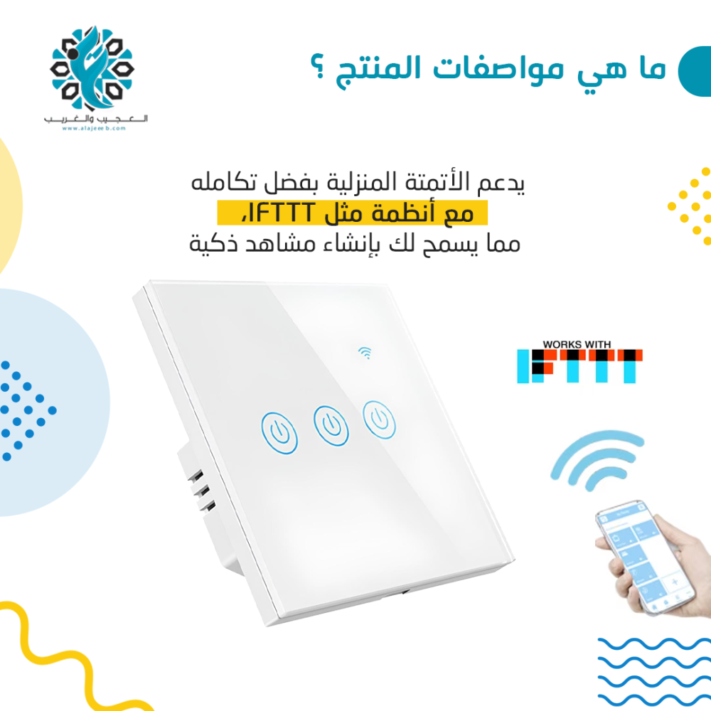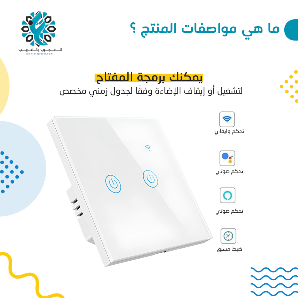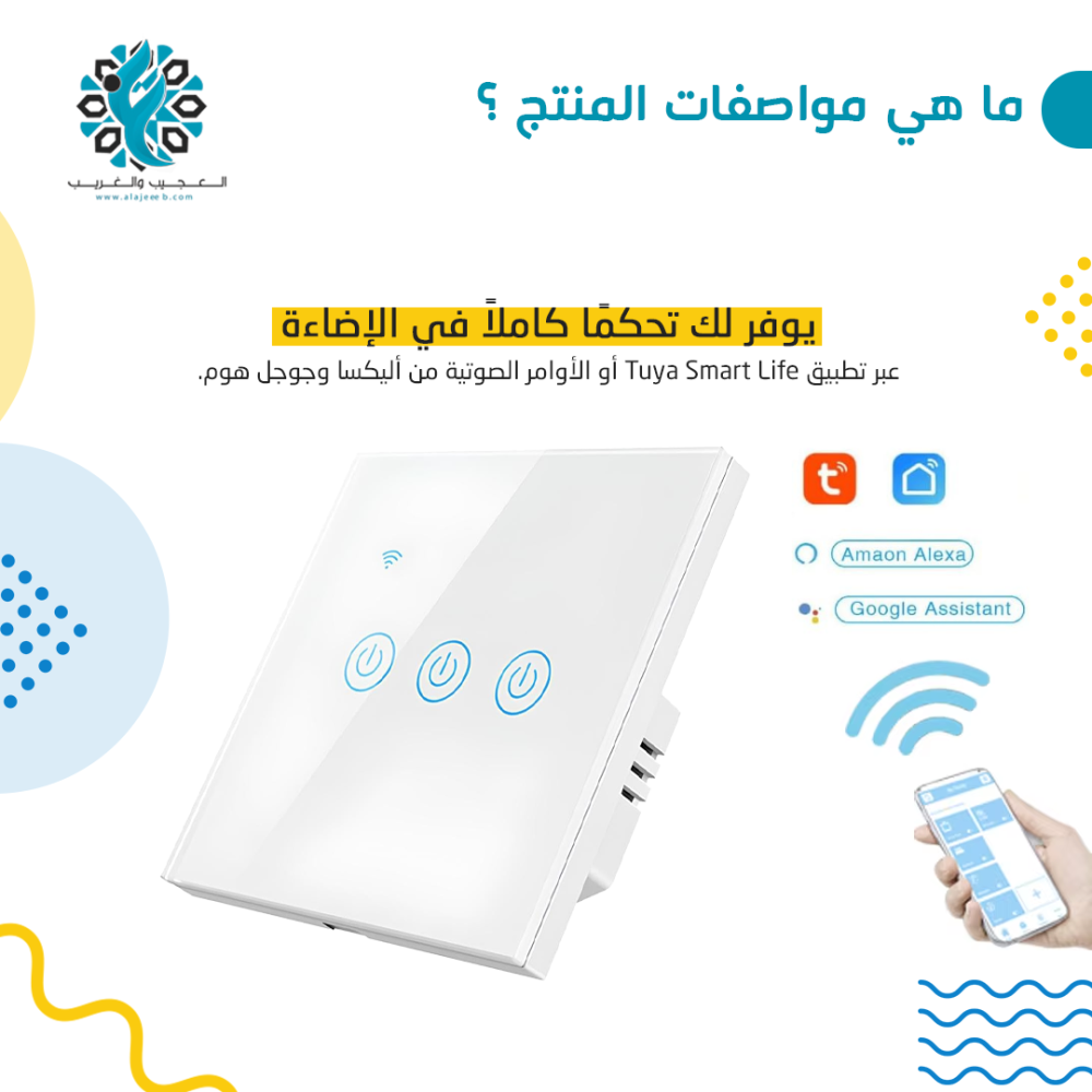 • مفتاح البيت الذكي يدعم الأوامر الصوتية عبر أليكسا وجوجل هوم مما يتيح لك التحكم في الإضاءة بدون الحاجة إلى الضغط على المفتاح.