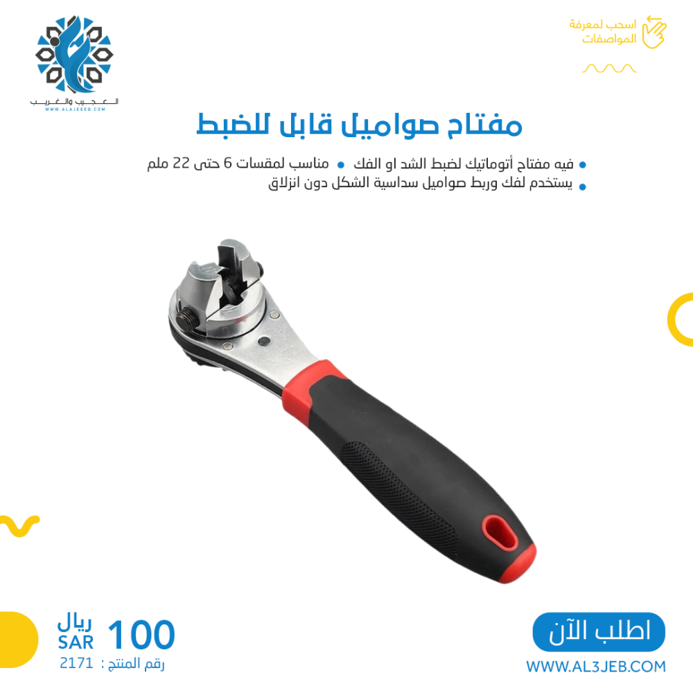 - يمكنك الحصول على "مفتاح صواميل قابل للضبط" الآن من متجر العجيب والغريب بالإضافة إلى الكثير من المنتجات الأخرى إذا قمت بزيارة موقعنا، قم بالطلب الآن نصلك بأقصى سرعة.