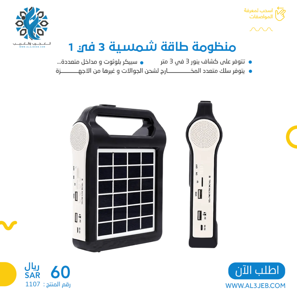 - استمتع بالقوة والاستدامة مع نظام طاقة داخلي الذي يوفر حلاً متكاملاً لشحن وتشغيل الأجهزة الإلكترونية واللوحية بكفاءة عالية وبأداء متميز.